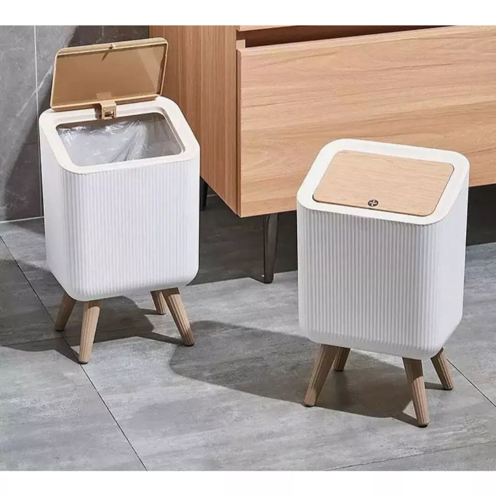 Lixeira Com Tampa De Pressão Moderna E Pés De Madeira